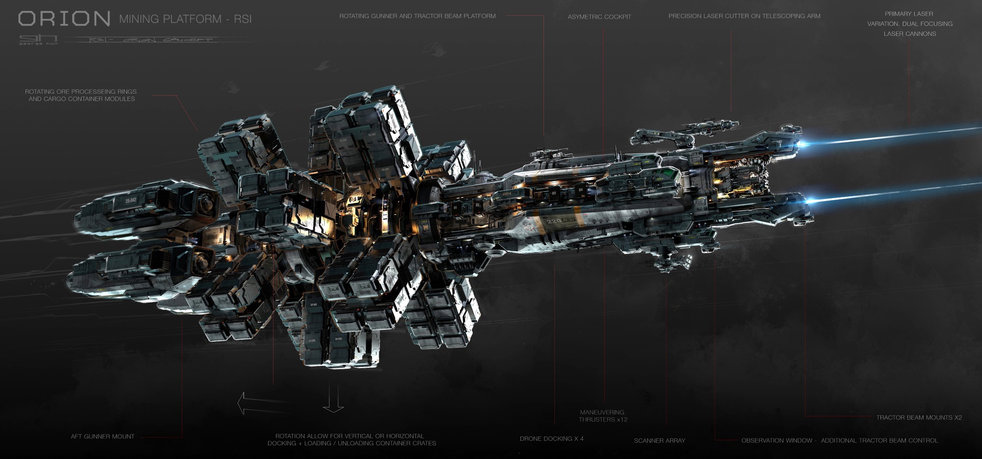 Der Beam Operator, normalerweise die Nummer zwei in der Befehlskette einer Miningoperation, ist für die Kontrolle des Abbaulasers verantwortlich. Diese Abbaulaser sind an einem oder mehreren Roboterarmen befestigt, man könnte das Ganze mit einem Chirurgen vergleichen. Hier und da ein kleiner oder auch großer Schnitt. „Erze, kommt zu Papa!“ Der Operator fängt an, den Asteroiden in passende Stücke aufzutrennen, aber Achtung: Hier kann eine Menge schiefgehen. Da die Abbaulaser mit sehr großen Energiemengen arbeiten, können Fehler sehr schnell zu extrem gefährlichen Kettenreaktionen führen. Arbeitet der Operator wie die Axt im Walde, dann wird es schnell gefährlich, deshalb sind kleine vorsichtige Schnitte die bessere Wahl.