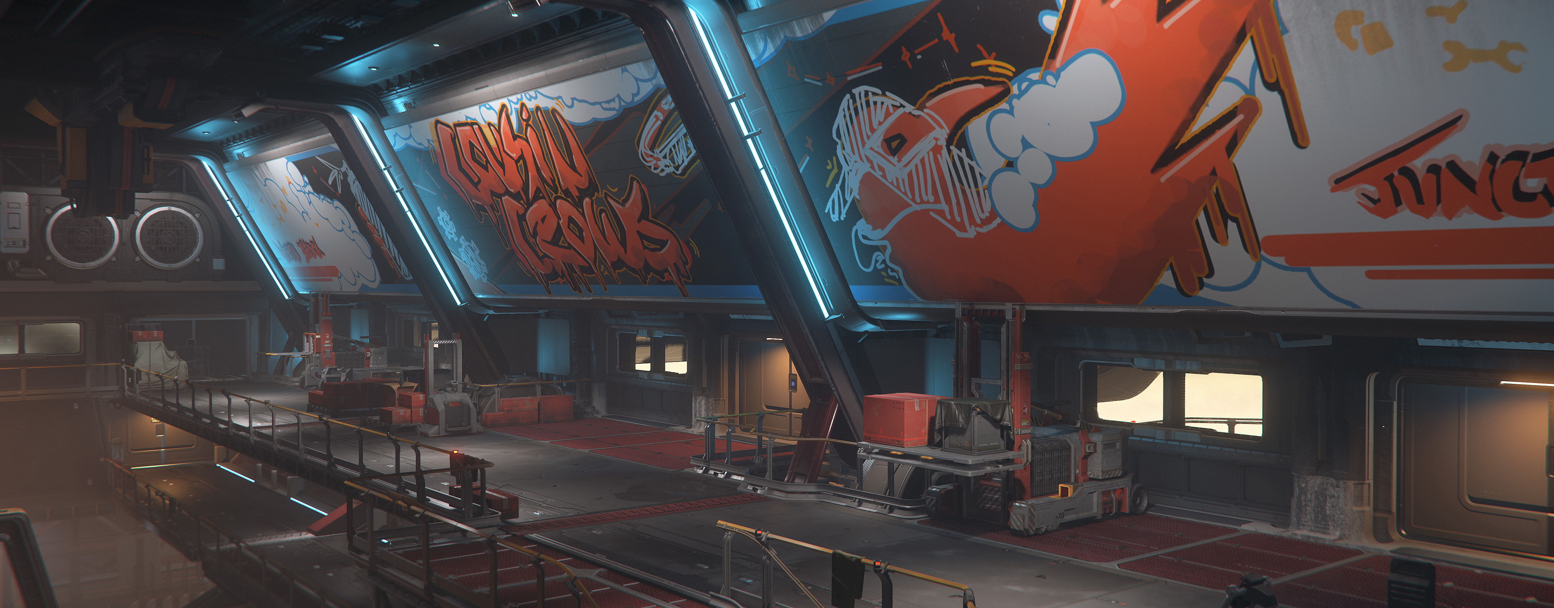 Wenig später luden ihn Führungskräfte von Drake ein, ihr Hauptquartier auf Magnus zu besuchen. Dort zeigten sie Cousin Crow die Pläne für ihr erstes Großschiff und boten ihm an, eine exklusive Lackierung für die Markteinführung zu entwerfen. Doch Cousin Crow konterte mit einer noch kühneren Idee. Im Laufe der Jahre hatten ihn viele seiner Kunden beauftragt, die Laderäume ihrer Schiffe in Banu-ähnliche Marktplätze zu verwandeln. Wie viel besser wäre es, direkt mit Drake zusammenzuarbeiten, anstatt eine Modifikation für den Sekundärmarkt zu entwerfen? Drakes Führungskräfte waren von der Idee begeistert, und schon bald war die Kraken Privateer geboren, welche Cousin Crow’s Ruf als einer der besten Läden für Modifikationen in der UEE besiegelte.