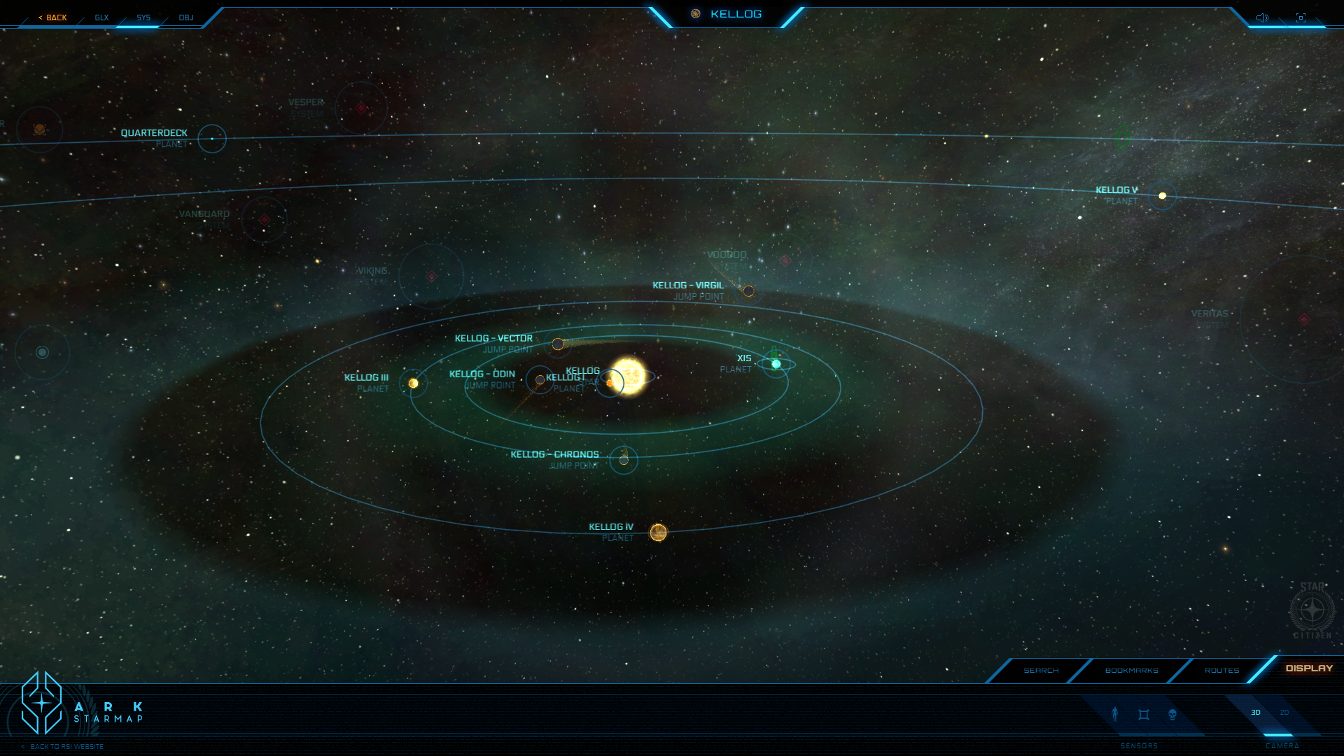 Das Kellog-System ist in der gesamten UEE sowohl als die Heimat der Unschuld als auch der Unmoral bekannt. Die zwei bewohnten Planeten des Systems, die einen gelben Zwerg (Hauptreihenstern des Typs G) umkreisen, stehen in starkem Kontrast zueinander. Kellog II (Xis) steht unter schwerer Bewachung, um die neuen Spezies, die sich auf ihm entwickeln, zu schützen, während Kellog VI (QuarterDeck) unter schwerer Bewachung steht, um sicherzustellen, dass die dort inhaftierten hartgesottenen Verbrecher nicht entfliehen können.