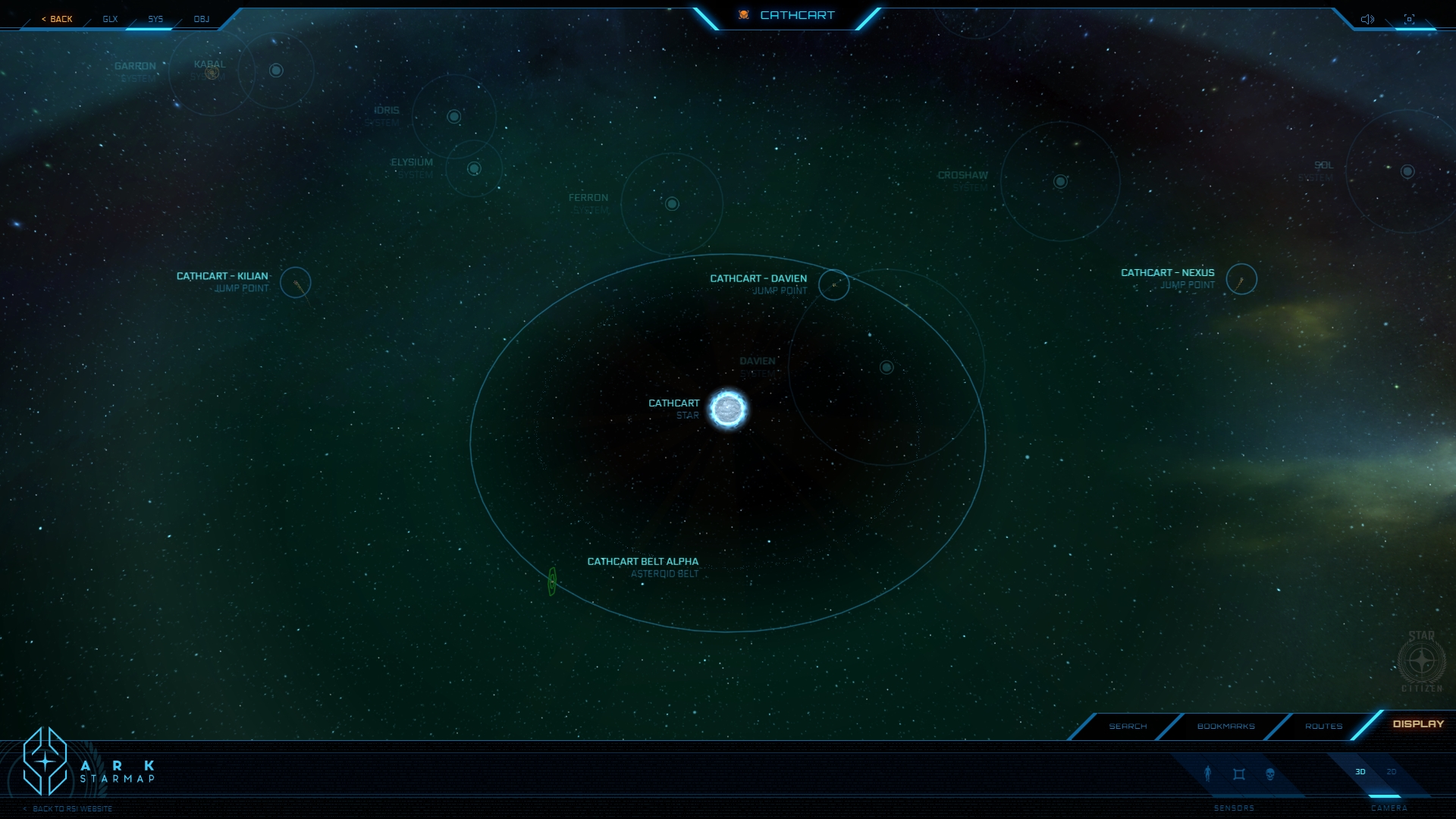 Astronomisch gesehen ist Carthcart praktisch leer: Das System besteht aus einer Sonne ohne echte Planeten und einem lockeren Asteroidengürtel, der sich weit entfernt von dem theoretischen Grünen Band befindet. Eigentlich gibt es für niemanden einen Grund, hier leben zu wollen. Was heute als „der Schrottplatz der Galaxis“ bekannt ist, nahm einen bescheidenen Anfang. Das System wurde vor etwa fünfhundert Jahren kartiert und dann umgehend wieder verlassen. Ursprünglich wurde es als militärisches System der Klasse C eingestuft, dessen Zugang eingeschränkt war, und es gab Pläne, dort einen Horchposten zu errichten. Doch die rasche Weiterentwicklung der Scannertechnologie machte großangelegte orbitale Horchposten so weit von den Kernwelten hinfällig. Die Navy gab daher die bereits teilweise konstruierten Habitat-Plattformen auf, ohne zu ahnen, wo dies hinführen würde.