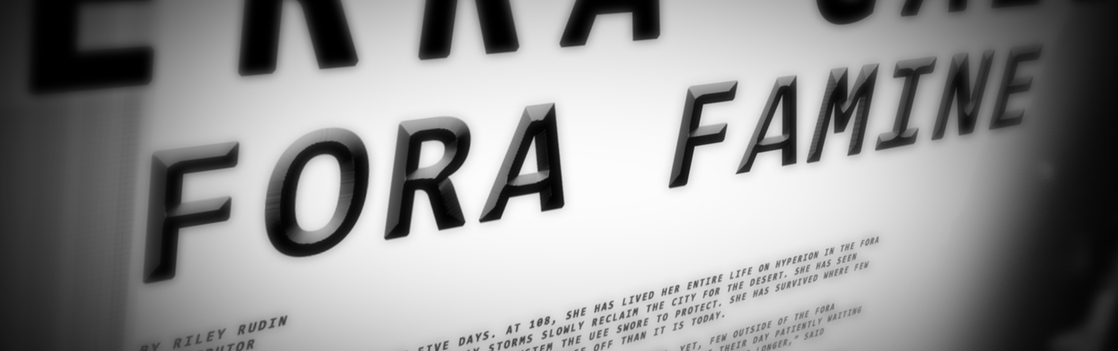 Im Fora-System ist eine Hungersnot ausgebrochen, doch scheint die UEE nicht entsprechend mit Hilfslieferungen zu reagieren. Die Terra Gazette erklärt, warum dem so ist, gibt einen Einblick in das Leiden der Bevölkerung und zeigt, wer in die Bresche springt, um den Menschen zu helfen.