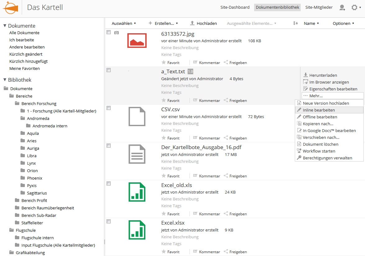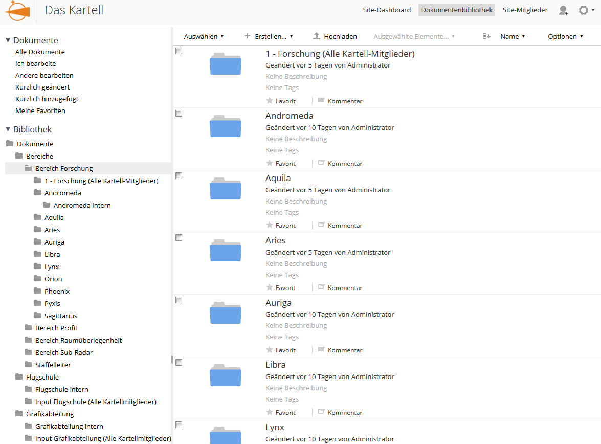 Die Dokumentenbibliothek im DMS, die die Dateien des Kartells erhält, könnt ihr direkt aufrufen: